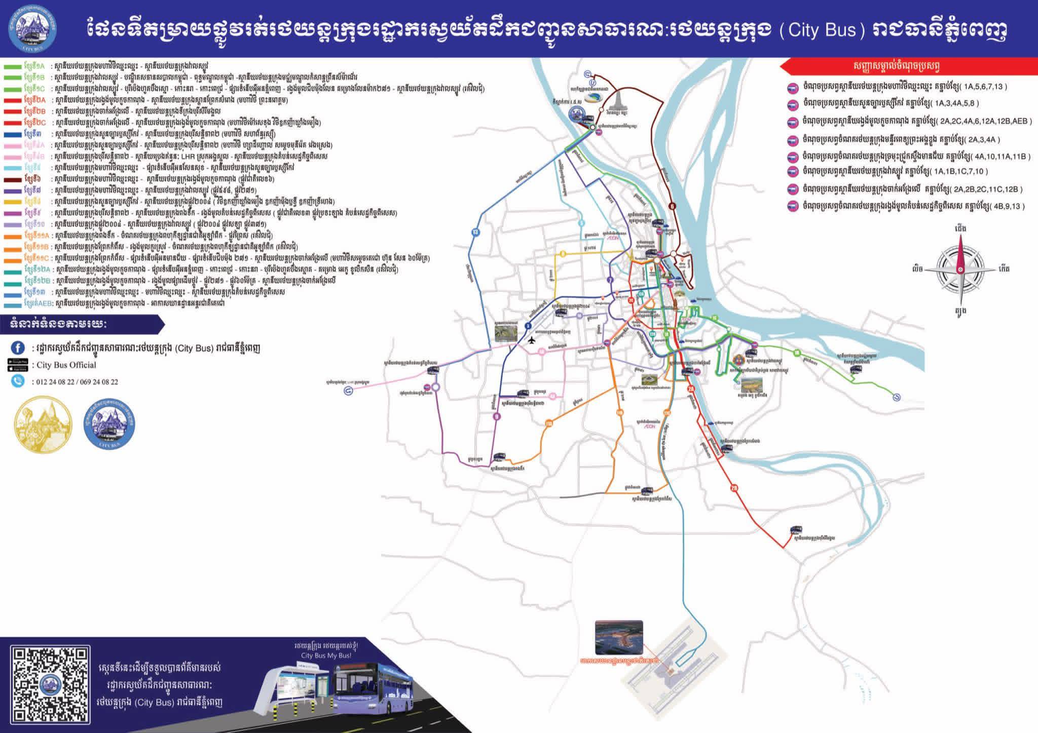 បច្ចុប្បន្ន រថយន្តក្រុងសាធារណៈ (City Bus) មាន ១៤ ខ្សែរត់ កំពុងប្រតិបត្តិការ នៅក្នុងរាជធានីភ្នំពេញ។