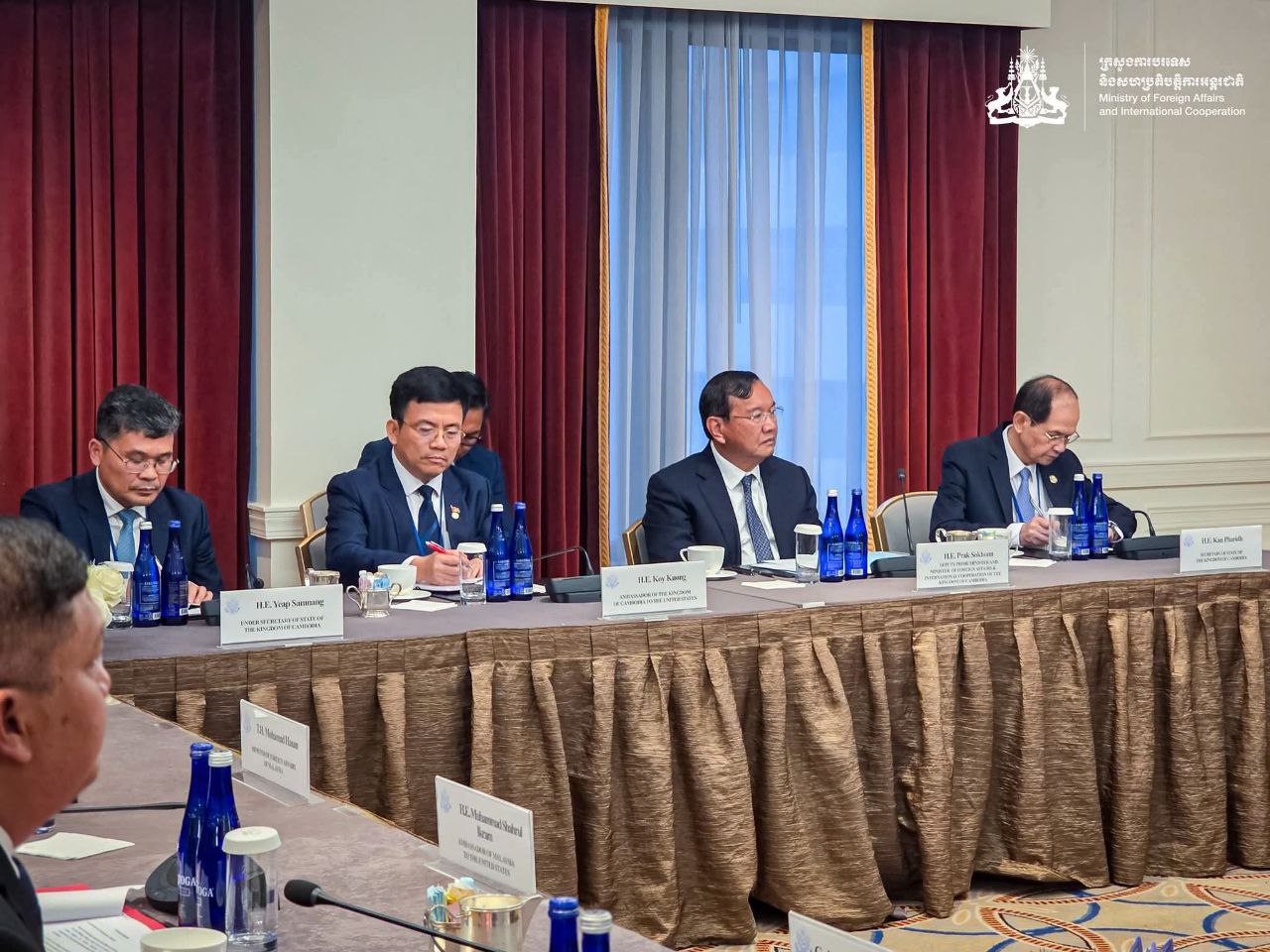 លោក ប្រាក់ សុខុន រដ្ឋមន្ត្រីការបរទេស និងសហប្រតិបត្តិការអន្តរជាតិ នារសៀលថ្ងៃទី២៦ ខែកញ្ញា បានចូលរួមកិច្ចប្រជុំ ១+៣ (អនុរដ្ឋមន្ត្រីការបរទេសអាម៉េរិក និងរដ្ឋមន្ត្រីការបរទេសកម្ពុជា ម៉ាឡេស៊ី និងថៃ) ដែលផ្តួចផ្តើម និងរៀបចំដោយក្រសួងការបរទេសសហរដ្ឋអាម៉េរិក។