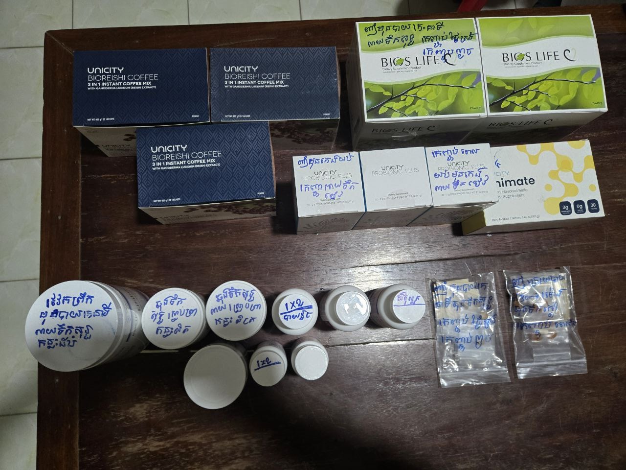 -ថ្នាំពេទ្យ ០៦ ប្រអប់ និង ០៩ កំប៉ុង ។