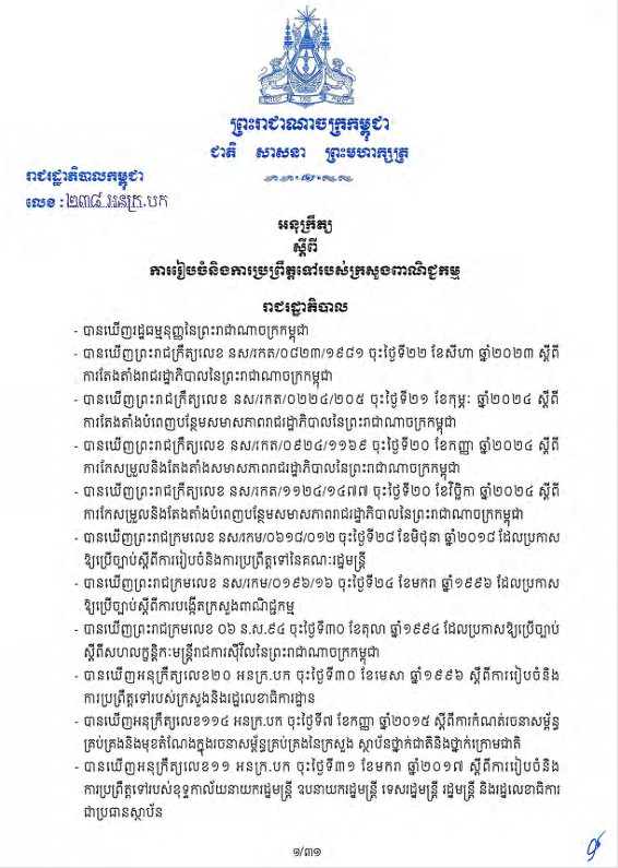 រៀបចំនីតិវីធីនិងលិខិតបទដ្ឋានគតិយុត្ត សម្រាប់អនុវត្តវិធានដើមកំណើតទំនិញ ក្រោមប្រព័ន្ធ អនុគ្រោះពាណិជ្ជកម្ម និងក្រៅប្រព័ន្ធអនុគ្រោះពាណិជ្ជកម្ម