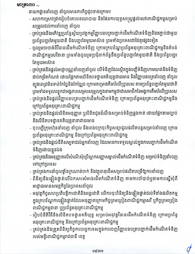 តួនាទីភារកិច្ចរបស់នាយកដ្ឋាននាំចេញនាំចូល នៃក្រសួងពាណិជ្ជកម្ម